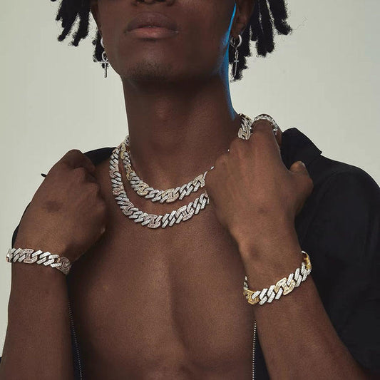 15mm Hip Hop Link Chain Necklace with Free Fire Moissanite Diamond