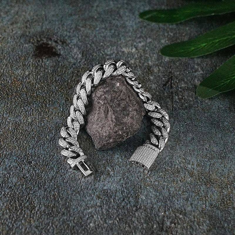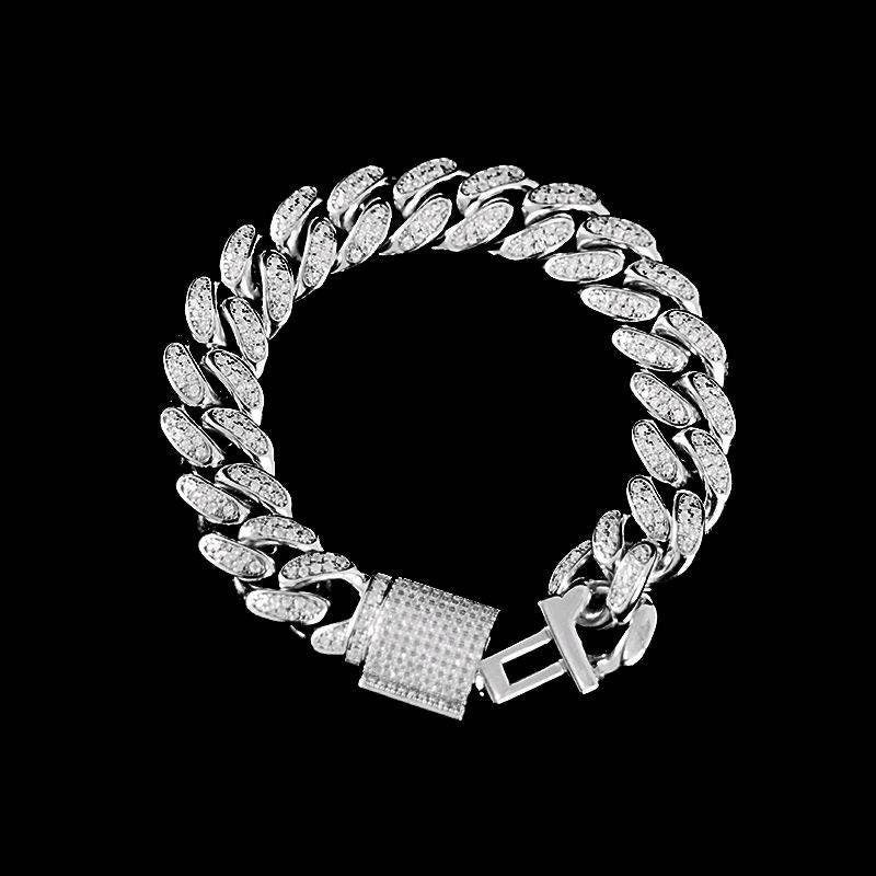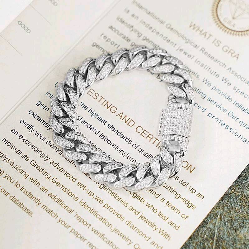 12MM 925 Silver Moissanite Diamond Cuban Link Bracelet